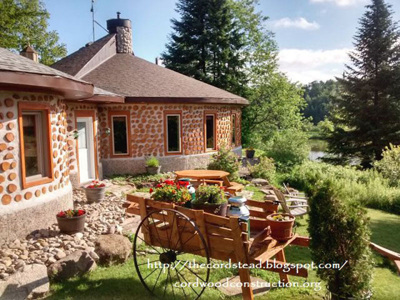Cordwood offers the imagination a chance to play. Using a few basic building concepts of proper foundation, frame and roof, the sky is the limit in how the owner/builder fills in the blank canvas of the wall. Random patterning, special features, bottle bricks and designs are all popular ways to make your cordwood home special. [Click here for more.]